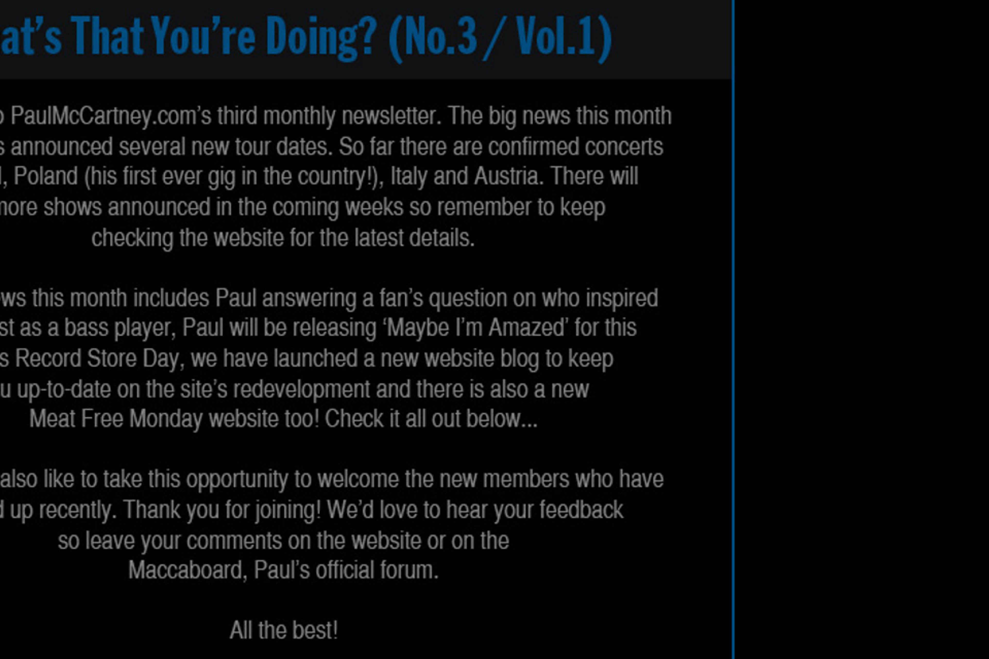 The new edition of 'What's That You're Doing?' has been published. The newsletter collects together the big stories from August here at PaulMcCartney.com.