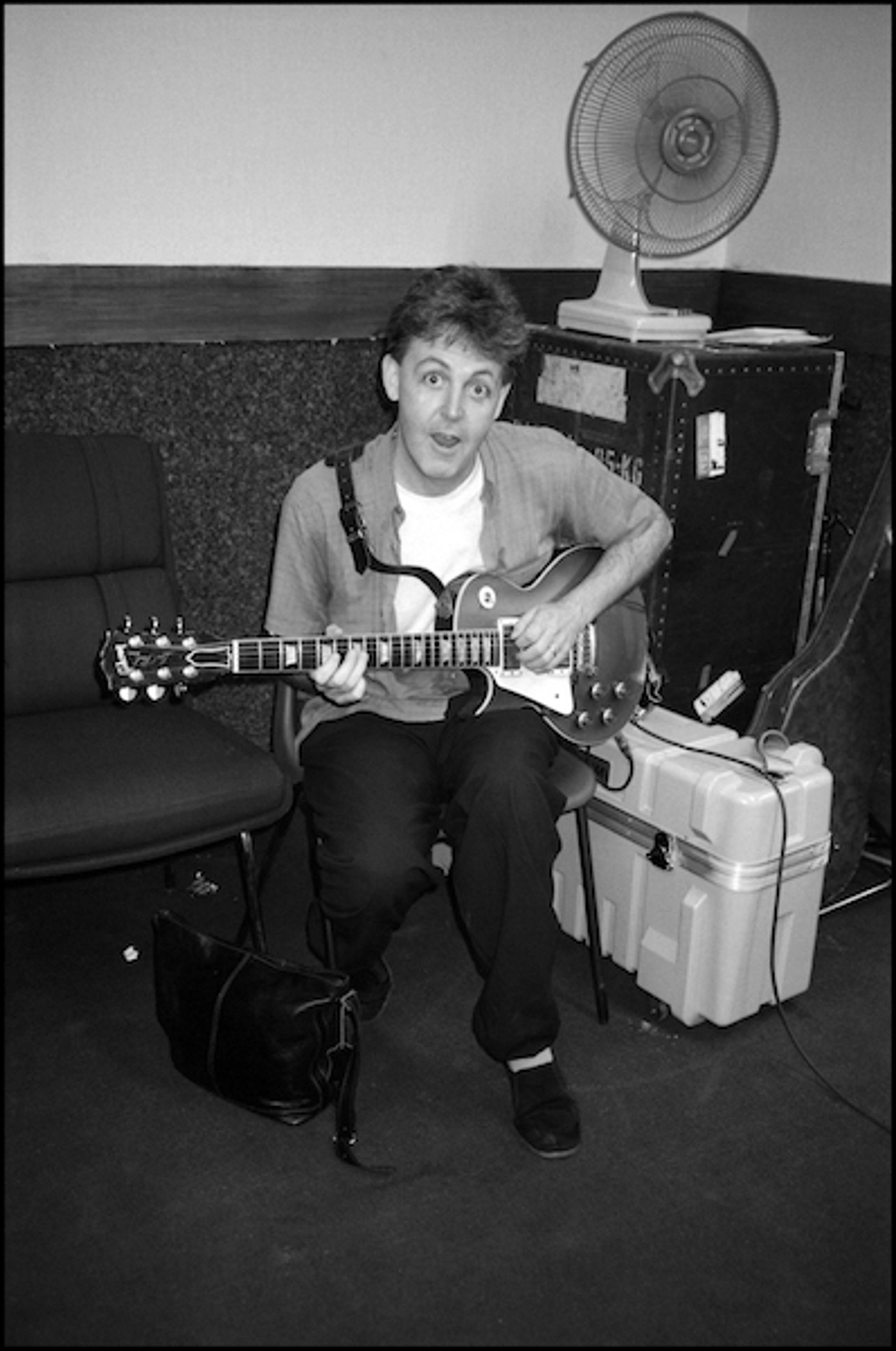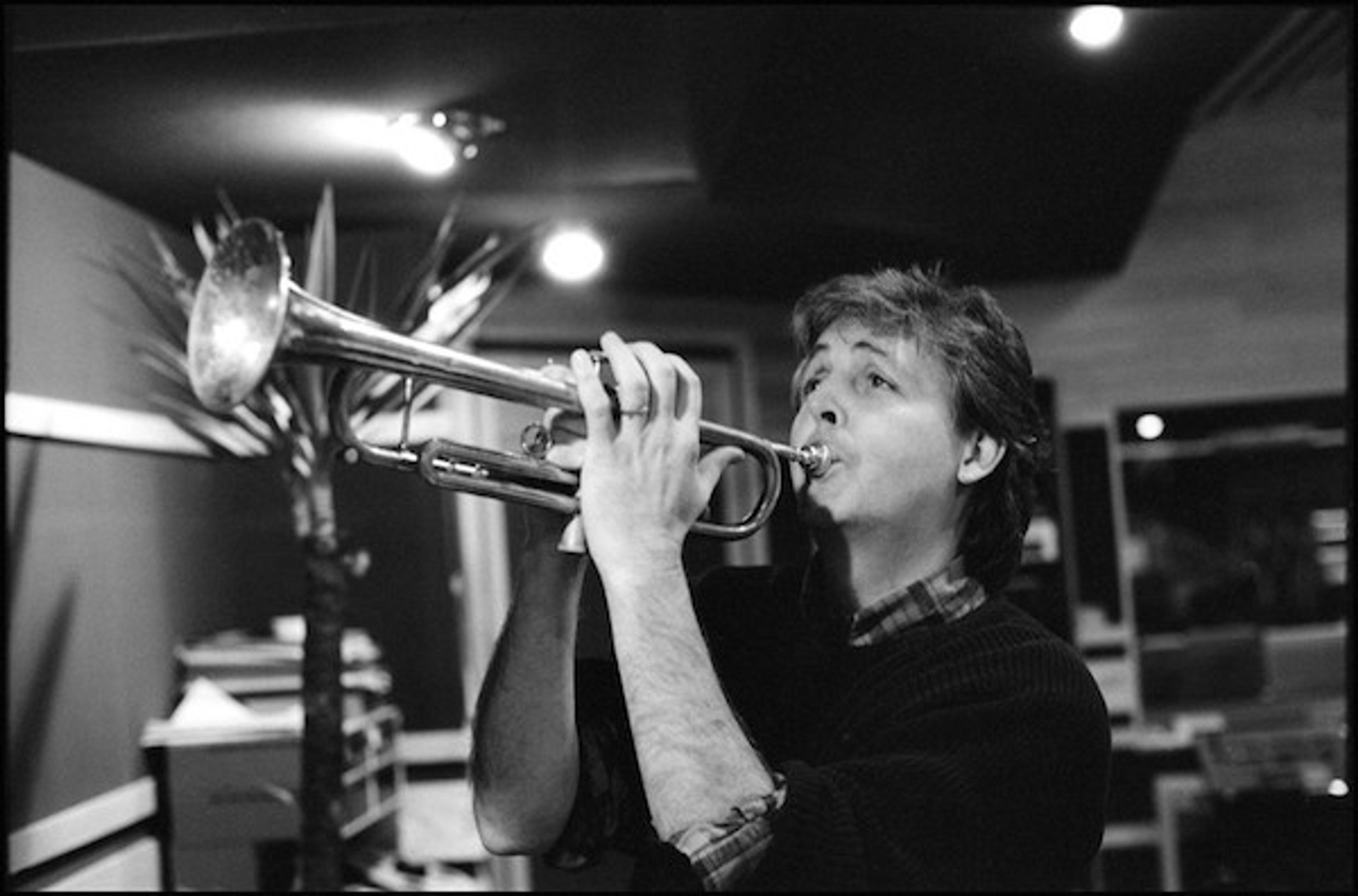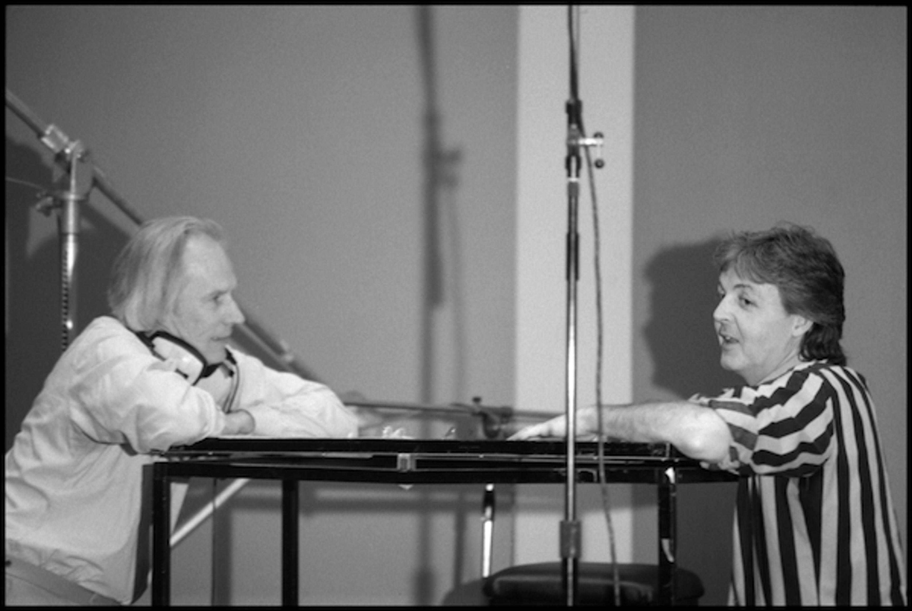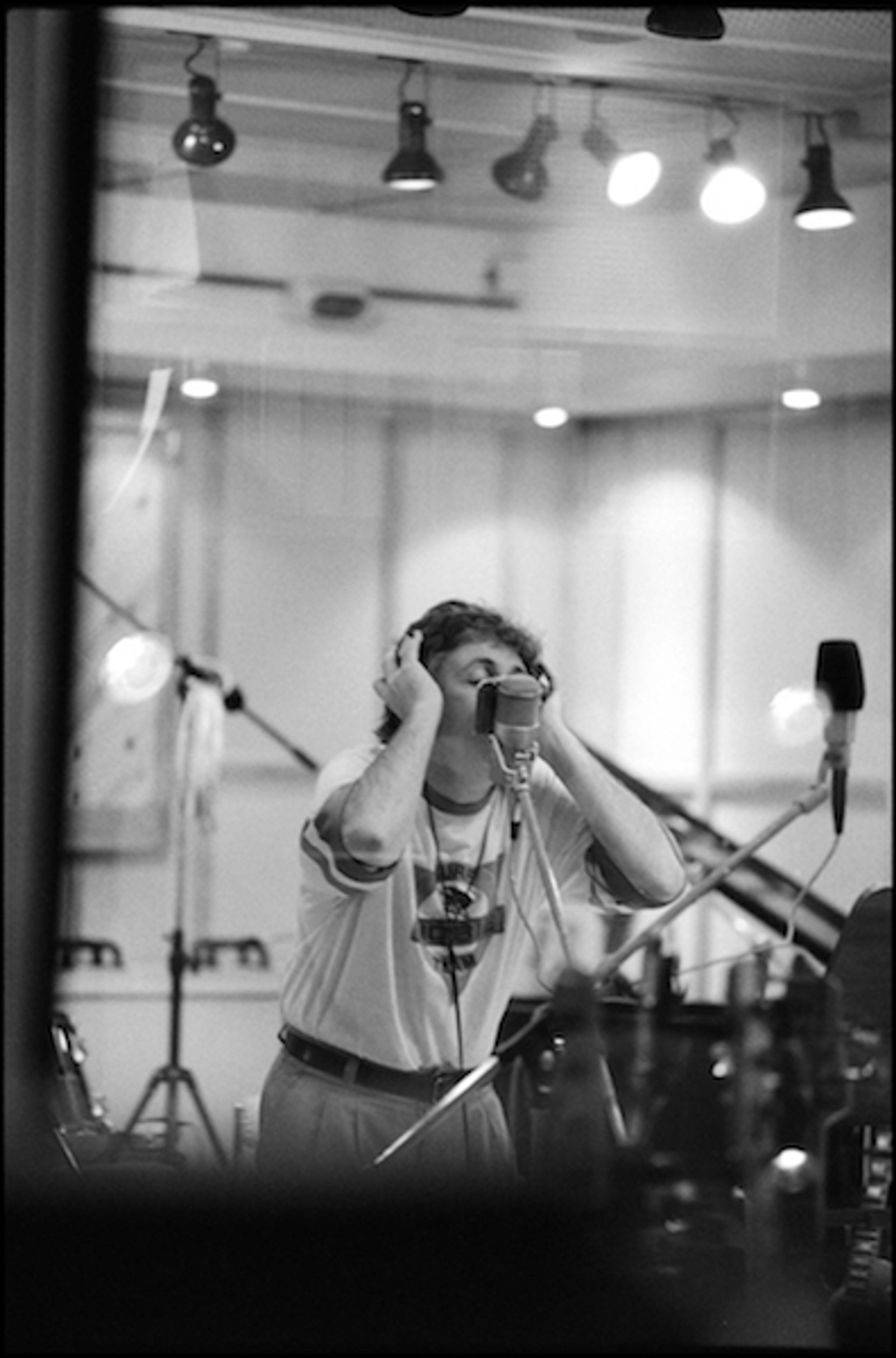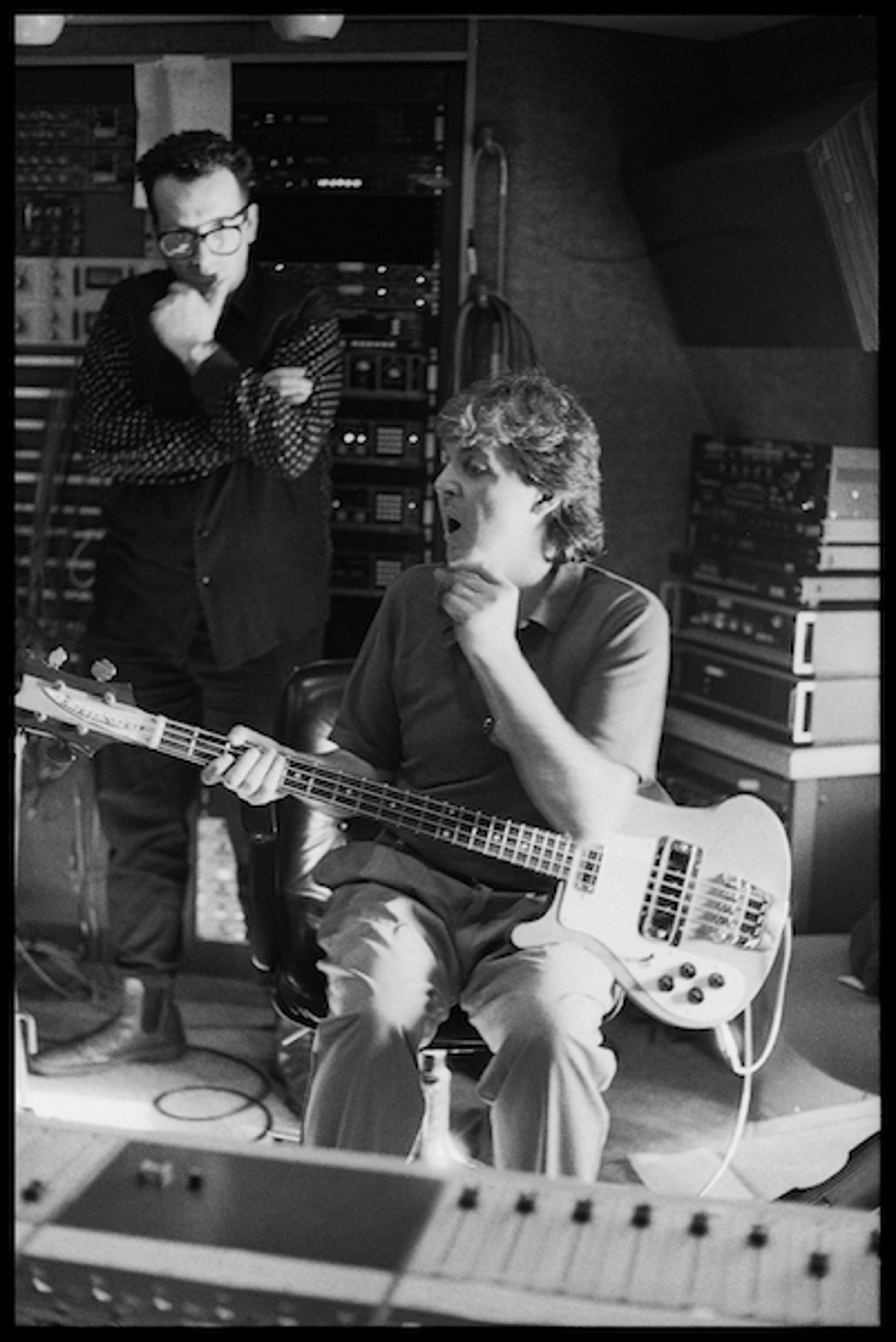 The photographs show Paul working with Elvis Costello, who he collaborated with on four of the tracks featured on the album ('My Brave Face', 'You Want Her Too', 'Don’t Be Careless Love' and 'That Day Is Done') as well as a shared moment with George Martin, who did the string arrangement for 'Put It There'.