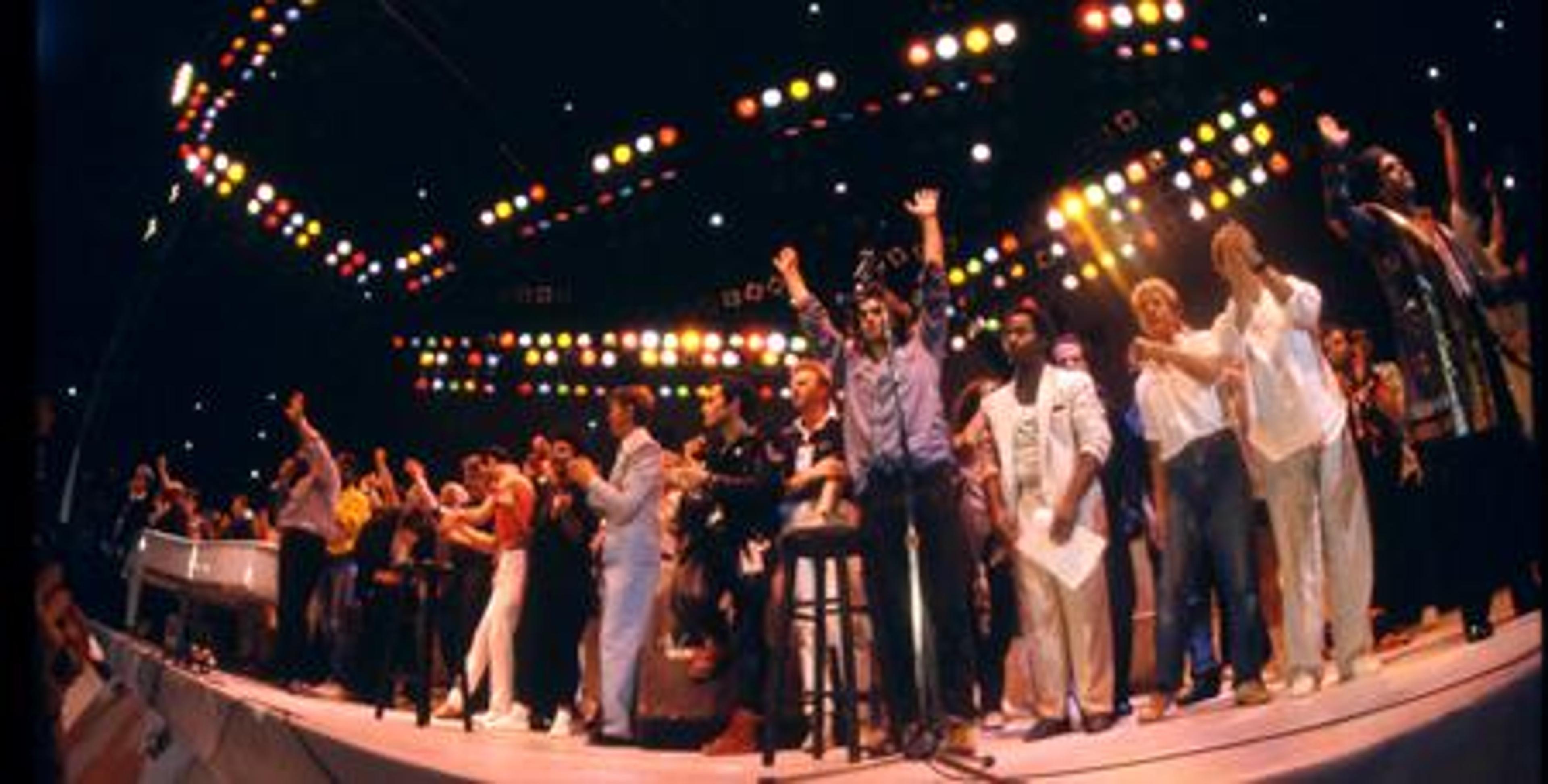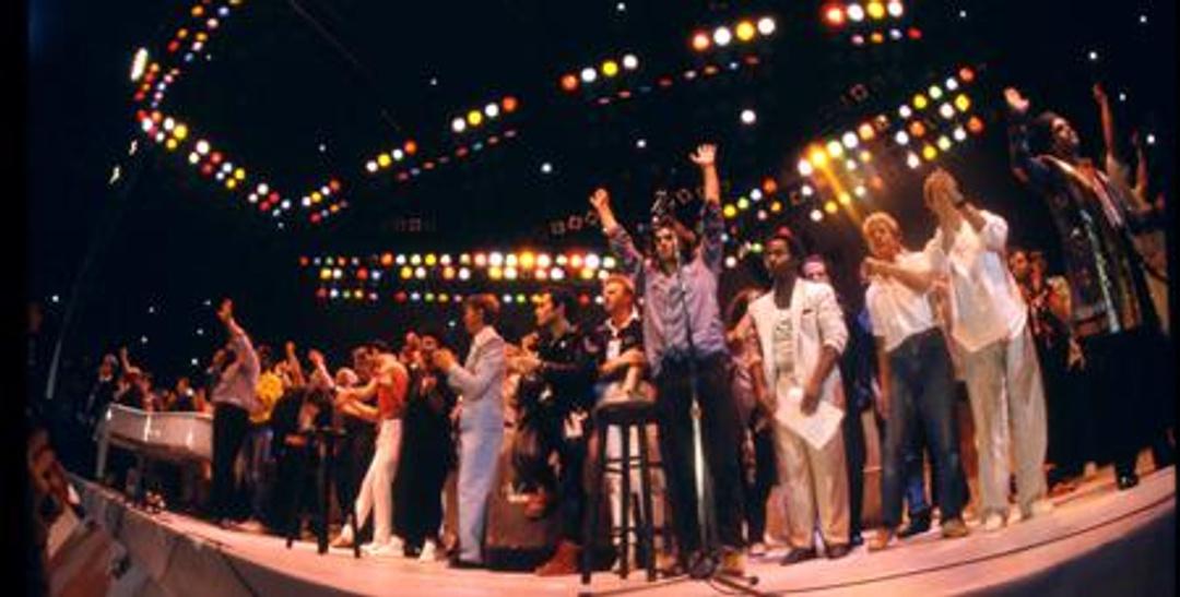The concert took place at Wembley Stadium in London to raise money for the ongoing famine in Ethiopia.