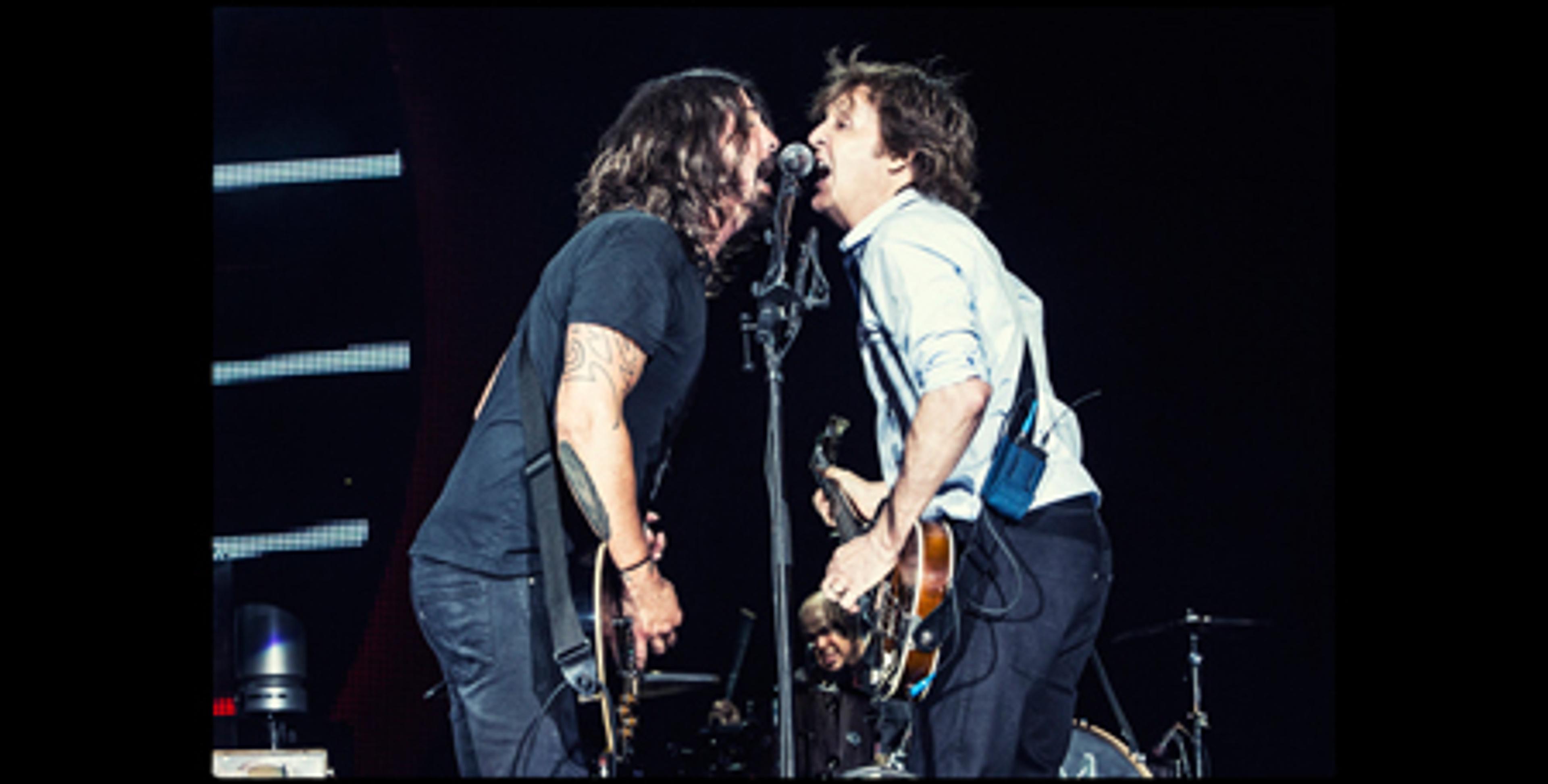 Having played 'Day Tripper' at the beginning of the encore, Paul welcomed to the stage Dave Grohl, Krist Novoselic and Pat Smear - all former members of the band Nirvana. The quartet then proceeded to play 'Cut Me Some Slack', a song written and recorded especially for Grohl's documentary about Sound City Studios.