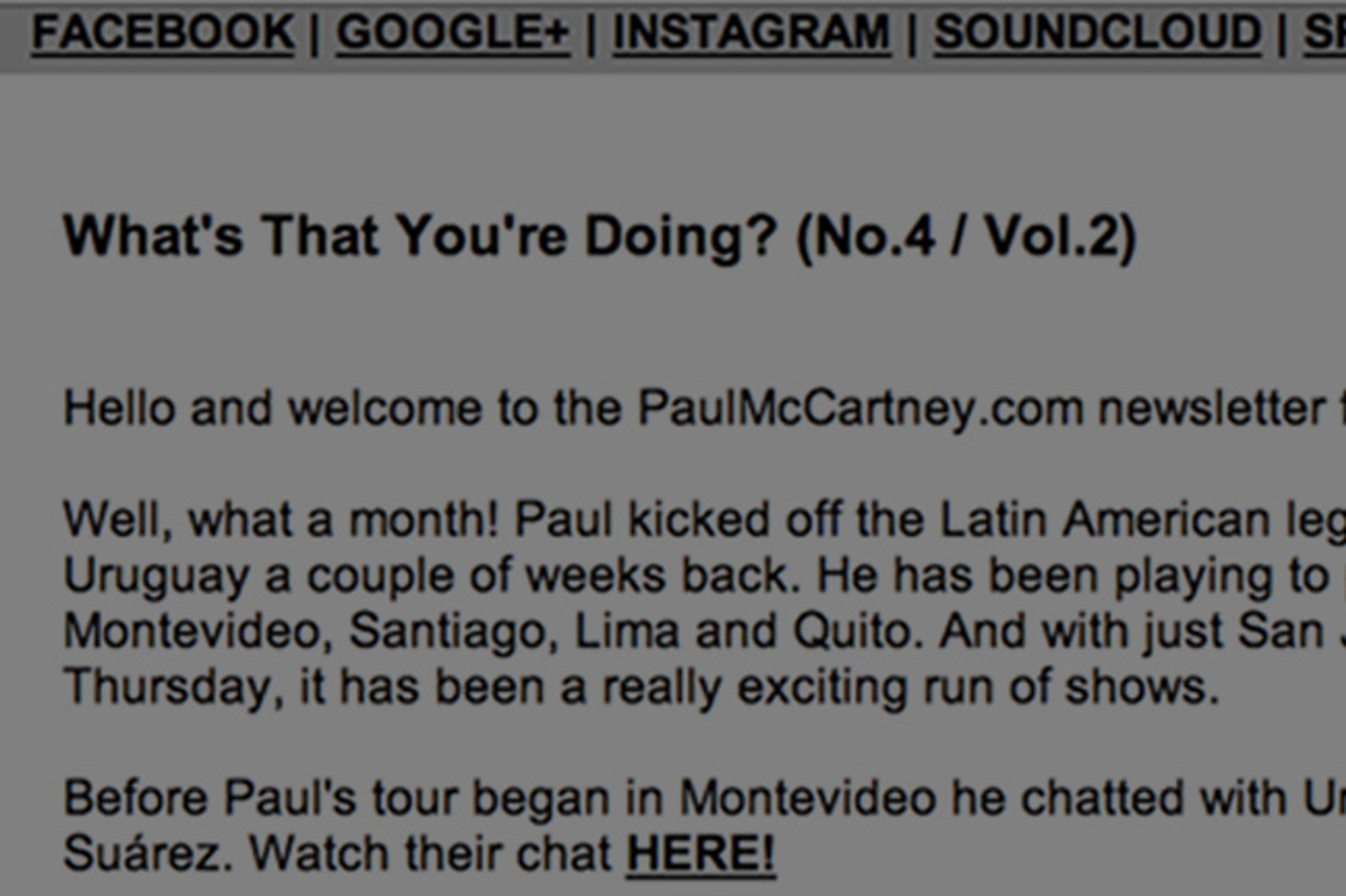 PaulMcCartney.com's monthly newsletter - 'What's That You're Doing?' - has been published for July. The update collects together the big news stories from the past month.