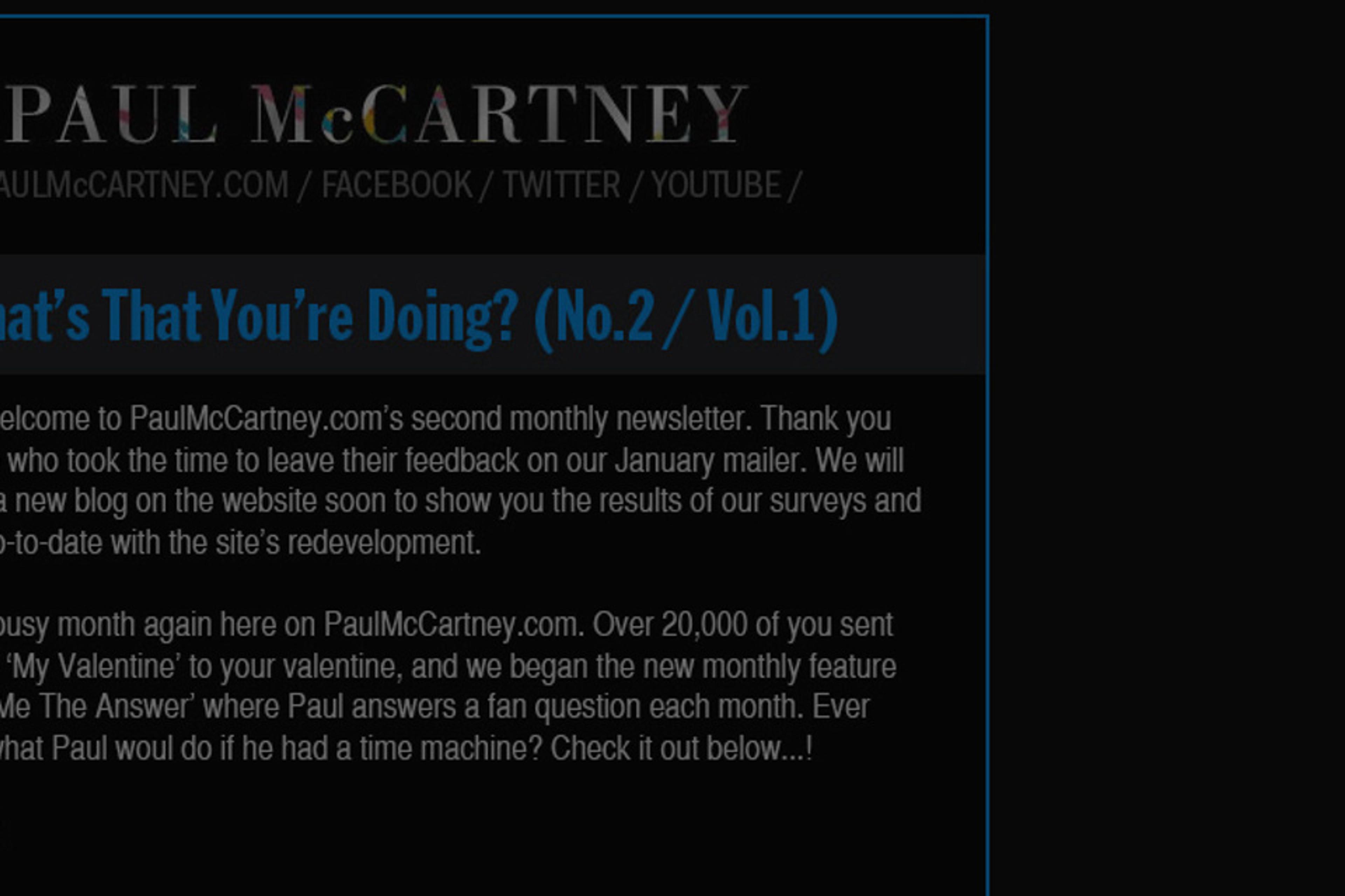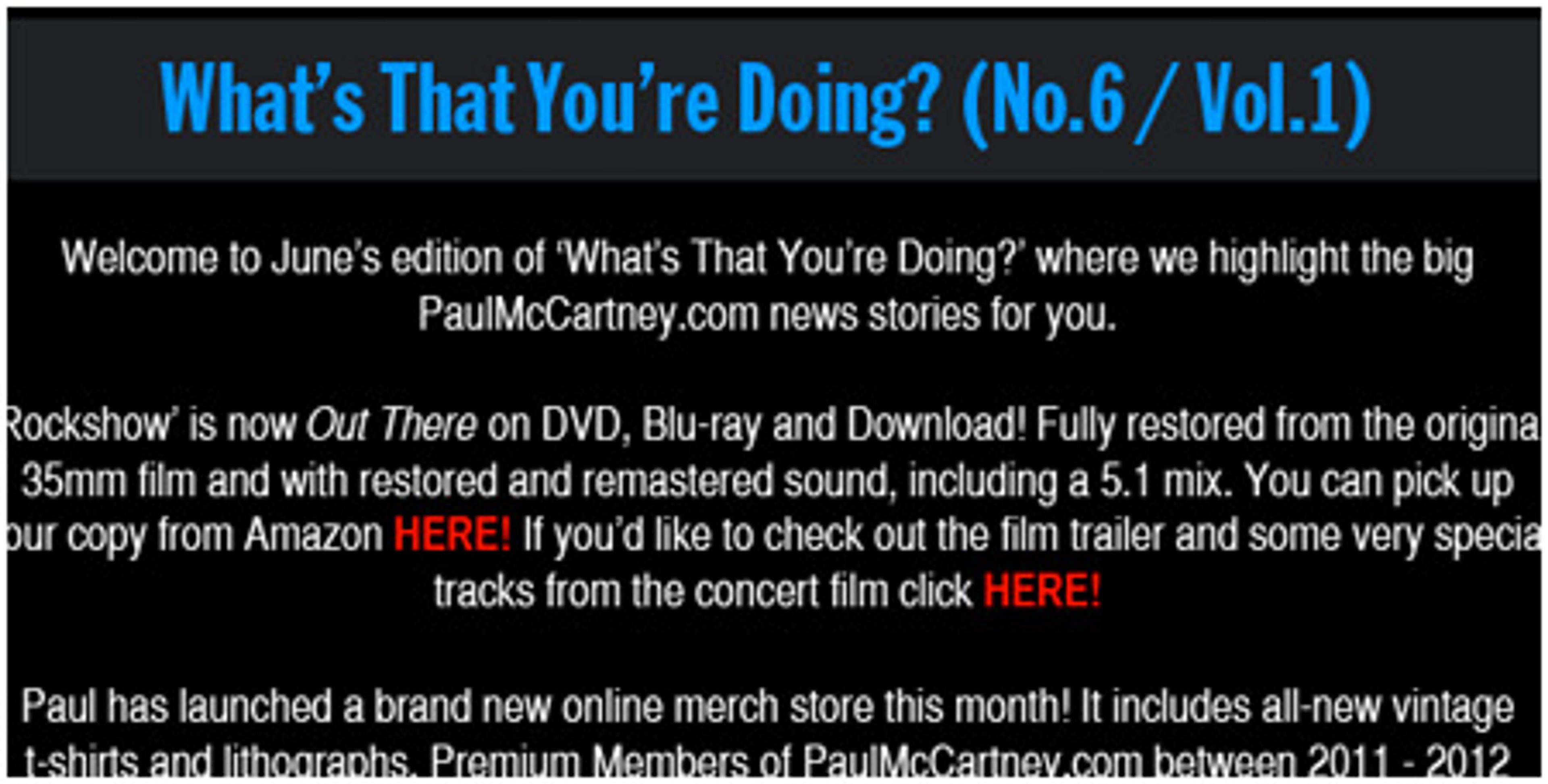 The latest issue of PaulMcCartney.com's monthly newsletter - 'What's That You're Doing?' - has been published today, collecting together the big stories from the month of June.