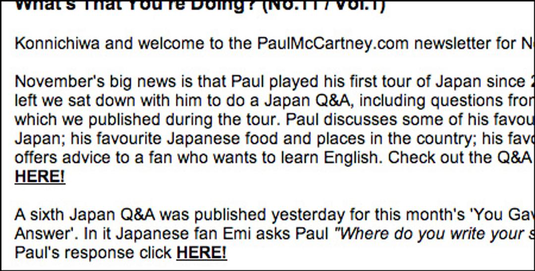 The November edition of 'What's That You're Doing?' has been published today. The newsletter collects together the main stories from PaulMcCartney.com over the past month.