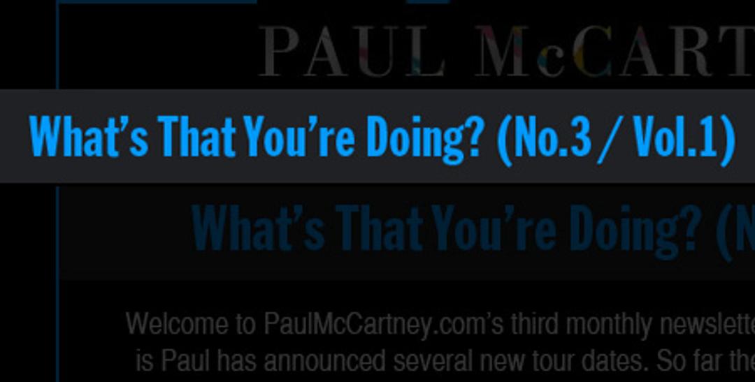 The third issue of 'What's That You're Doing?', PaulMcCartney.com's monthly newsletter, has been published today and collects together the big stories from March.